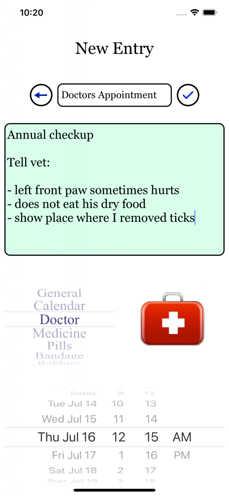 To add a new event or appointment tap the “add” button